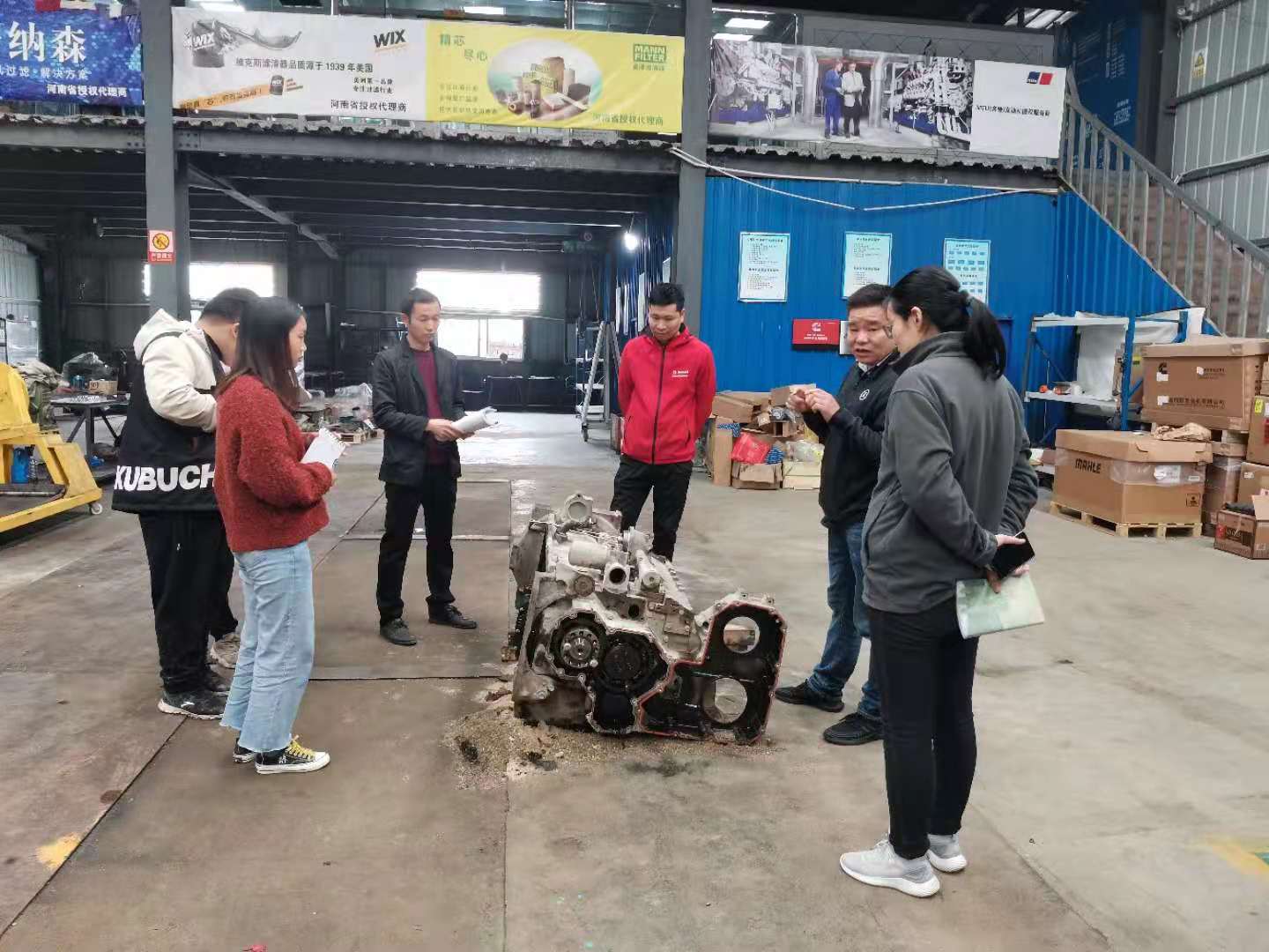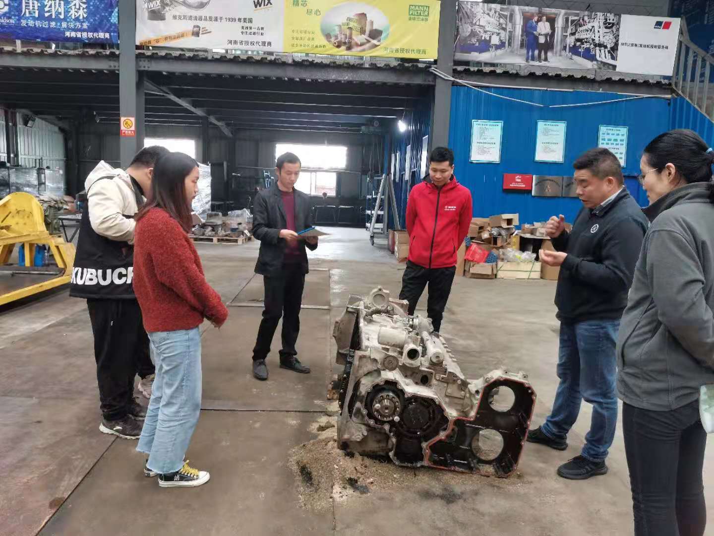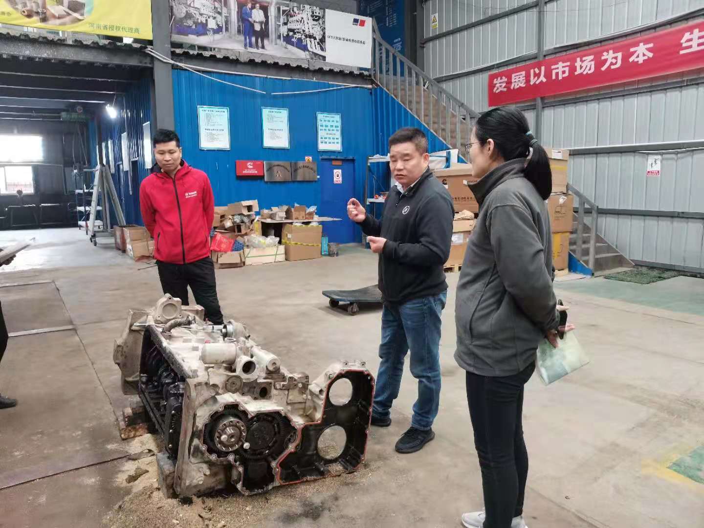 負責人余河中給我們講了康明斯發動機從外到內的構造及工作原理。