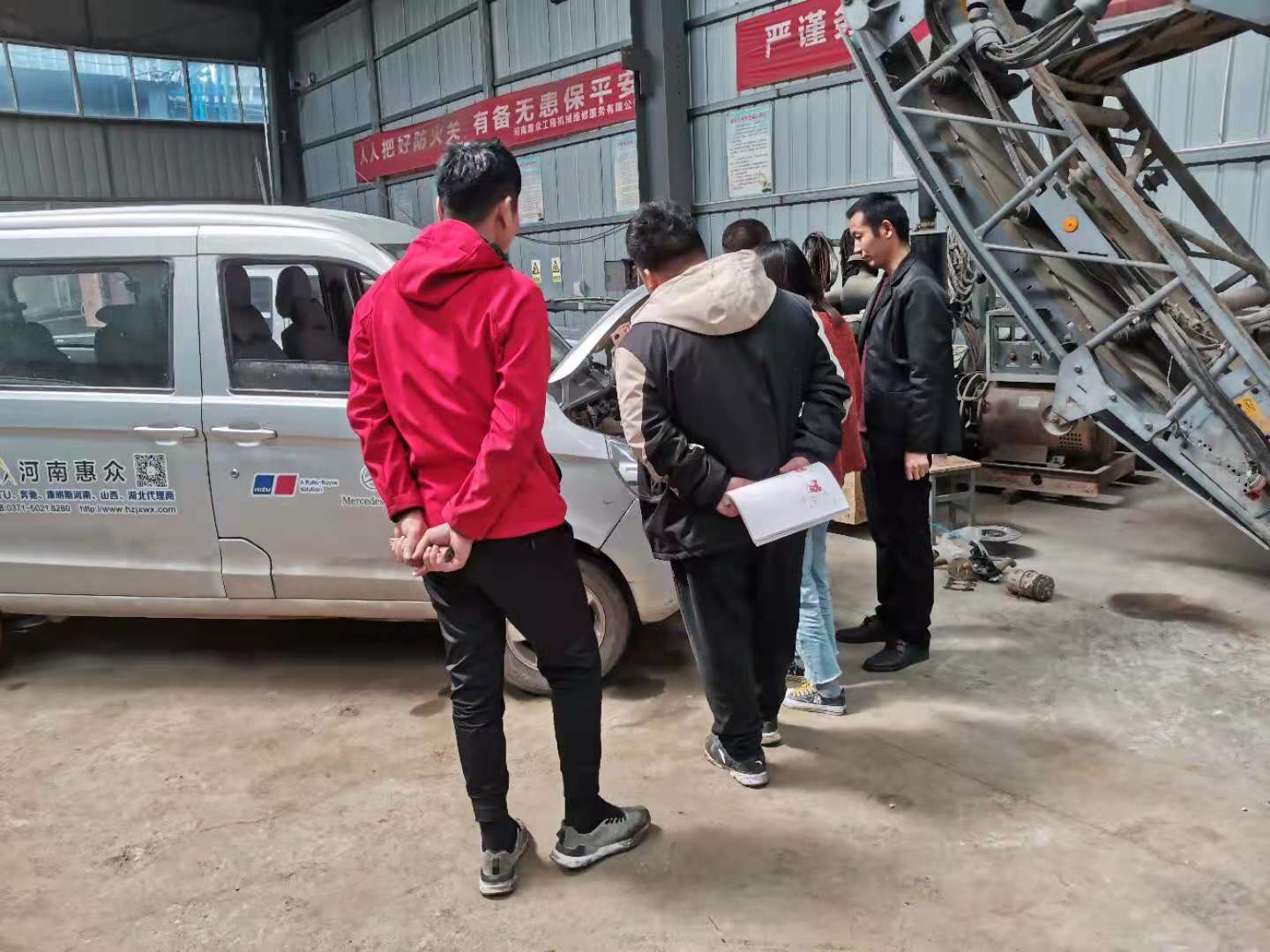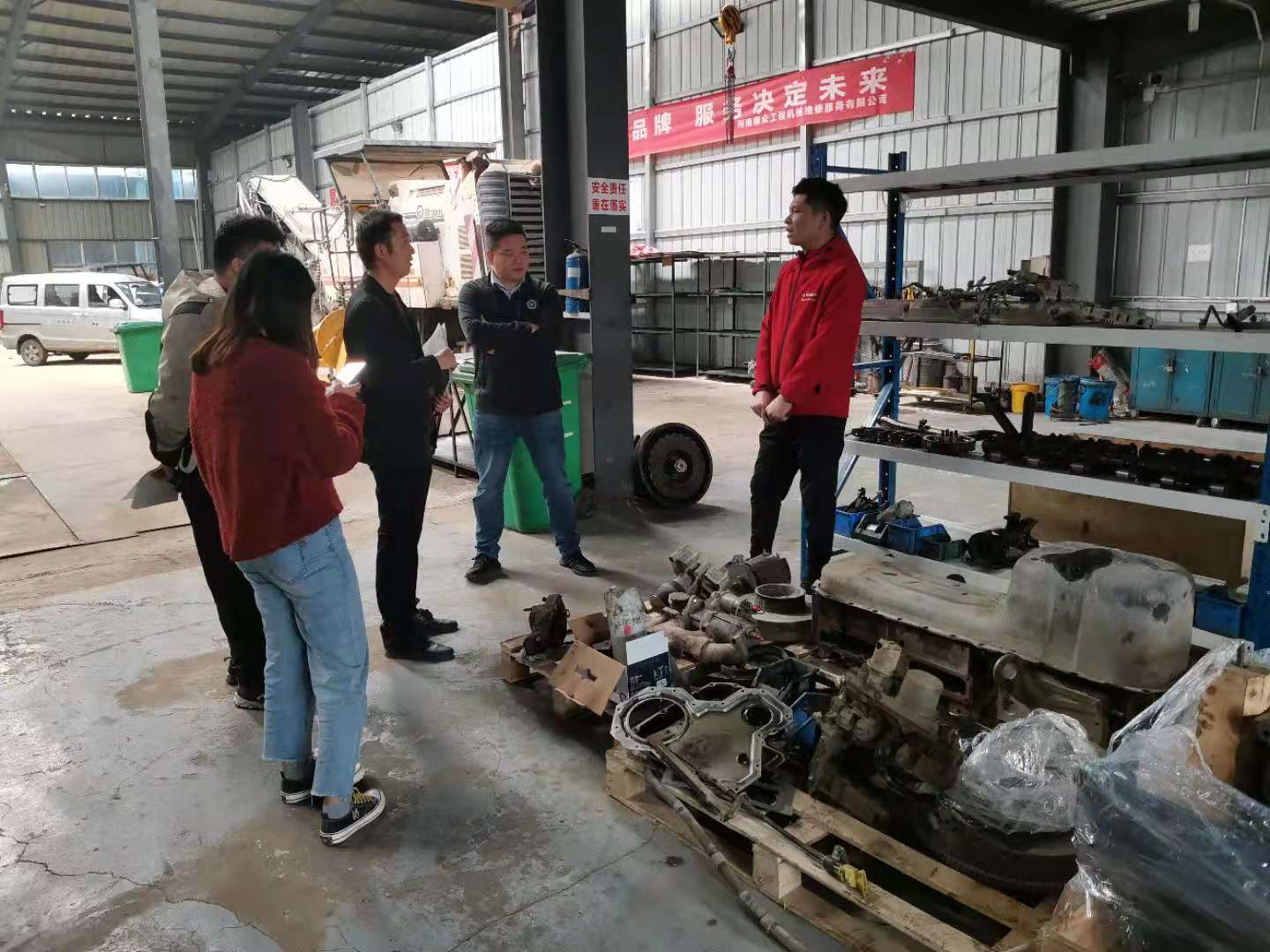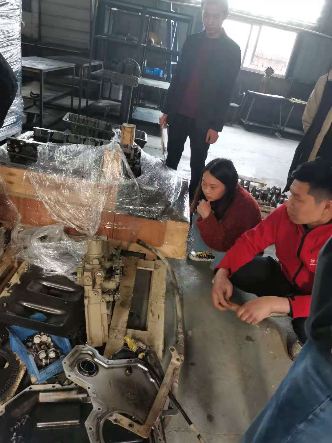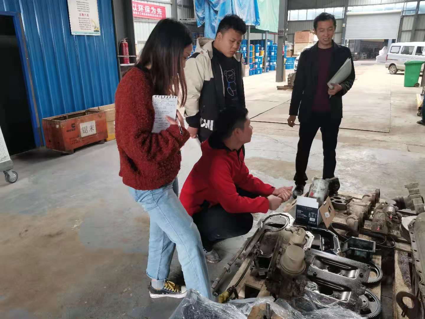 負責人余河中給我們講了康明斯發動機從外到內的構造及工作原理。